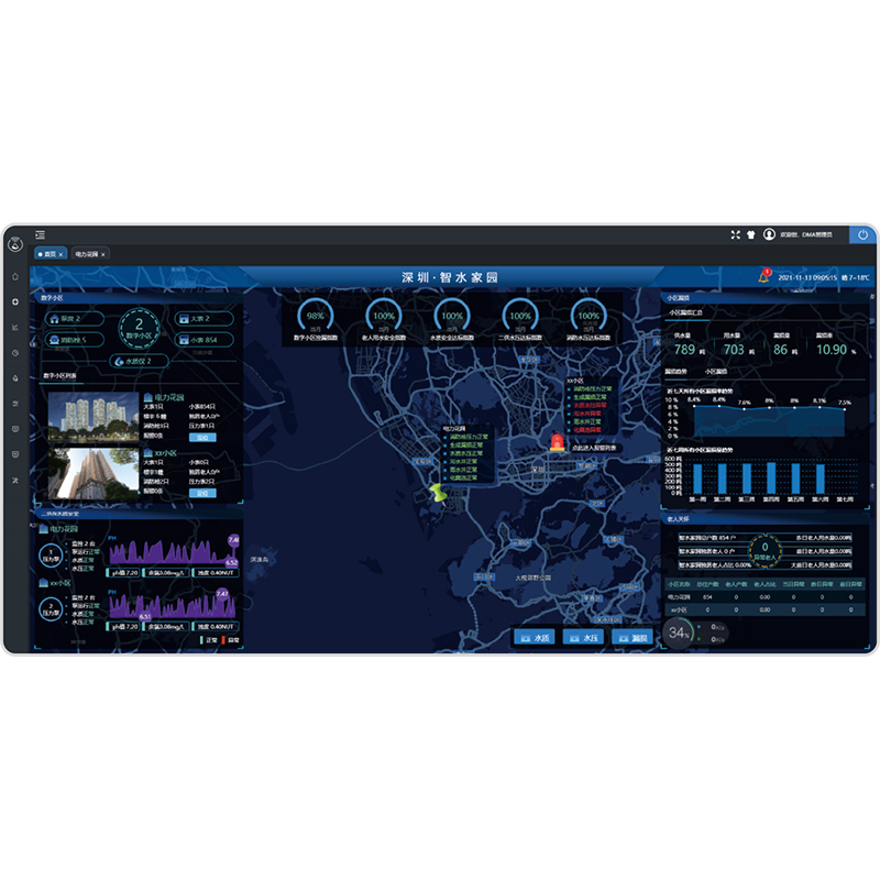 智水家園系統在響應國家大力倡導智慧城市建設的大背景下,將城市水務企業的供排水業務的高效集成管控、城市居民個人涉水業務的便捷辦理等雙方需求相融合,聚焦下沉至城市社區水務服務,通過物聯網、大數據、人工智能等基礎技術為保障,建立的一套未來社區型智慧水務軟件平臺。